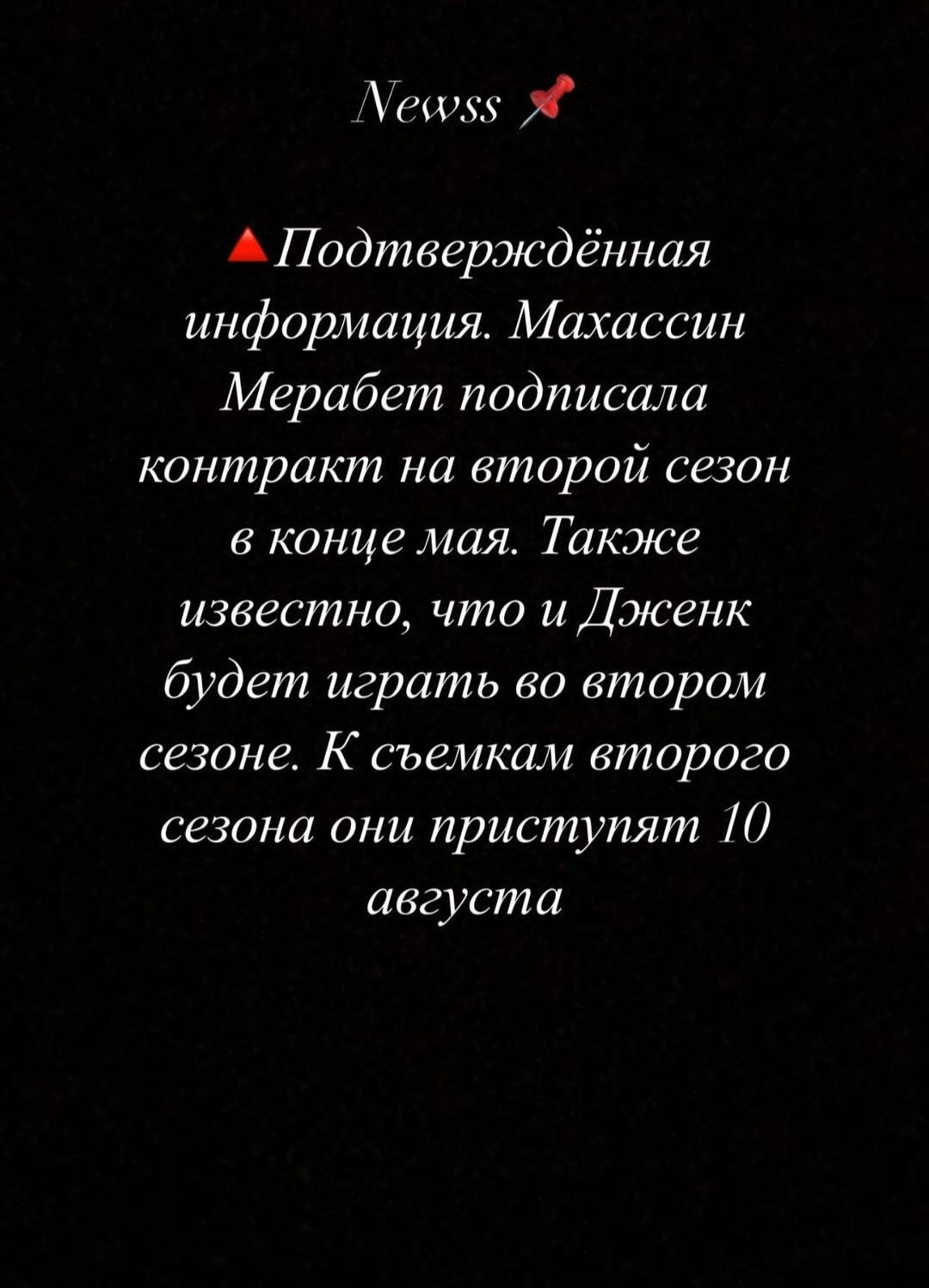 Спасибо за информацию, надеемся ,что ваш источник надежный! Теперь несколько слов об актерах - они нас пленили, поэтому наша огромная благодарность всем Ждем второй сезон и конечно надеемся на хеппи энд