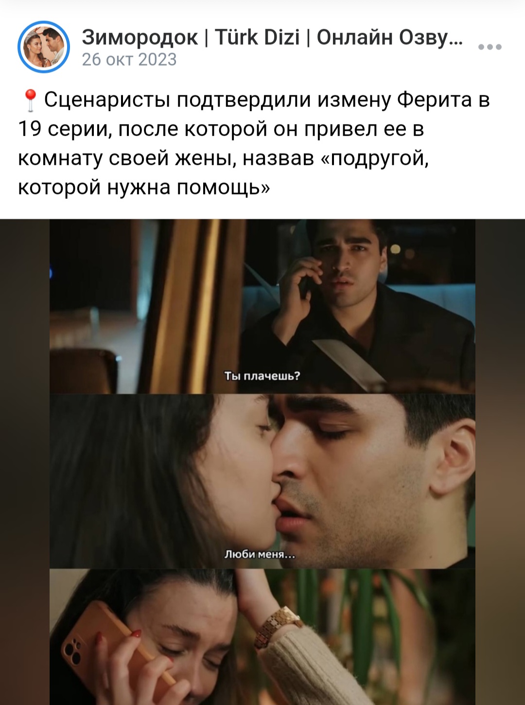 Сценаристы подтвердили измену Ферита в 19 серии, после которой он привел ее в комнату своей жены, назвав «подругой, которой нужна помощь» все кто смотрят сериал знают об этом